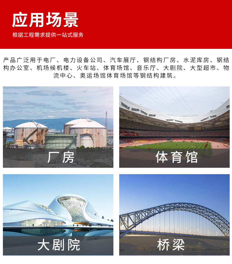 具有自重輕、強(qiáng)度高、鋼度大、防腐性好、抗震性強(qiáng)、耐火性佳、施工便捷、易于更新,同時(shí)符合國(guó)家倡導(dǎo)的節(jié)能、環(huán)保、安全要求。