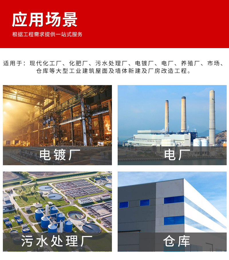 本產品具有自重輕、強度高、鋼度大、防腐性好、抗震性強、耐火性佳、施工便捷、易于更新,同時符合國家倡導的節(jié)能、環(huán)保、安全要求。